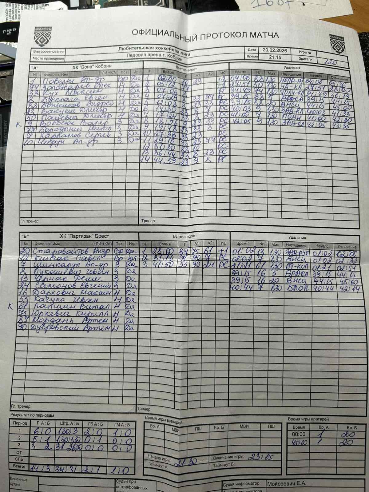 ХК Бона VS ХК Партизан КалендарьТаблица 20-02-2026 21:15 13-й тур Кобрин ХК Бона ХК Партизан 143 Обзор Обзор Cтатистика Составы Фото Статистика игроков 01:02 Штрафы Чернак Денис 01:02 Штрафы Шинкарук Александр Чирун Александр(Пас: Вакулич Дмитрий) Гол 02:00 Боженков Андрей Штрафы 04:06 Бородынич Николай Гол 05:12 Буклага Евгений(Пас: Кух Максим) Гол 07:06 Буклага Евгений(Пас: Кух Максим, Бородынич Николай) Гол 07:29 Буклага Евгений(Пас: Кух Максим, Вакулич Дмитрий) Гол 12:08 Вакулич Дмитрий(Пас: Буклага Евгений, Харламов Сергей) Гол 14:30 Кух Максим(Пас: Вакулич Дмитрий, Буклага Евгений) Гол 17:24 Волосюк Валерий(Пас: Вакулич Дмитрий, Кух Максим) Гол 18:56 Вакулич Дмитрий(Пас: Кух Максим, Буклага Евгений) Гол 19:48 21:21 Штрафы Лапшин Виталий Кух Максим(Пас: Вакулич Дмитрий) Гол 27:38 Пацевич Дмитрий Штрафы 27:51 28:00 Гол Мордань Артем(Пас: Юркевич Кирилл, Лапшин Виталий) Кух Максим(Пас: Бородынич Николай, Вакулич Дмитрий) Гол 29:16 31:16 Гол Юркевич Кирилл(Пас: Дубровский Артем, Шинкарук Александр) Боженков Андрей(Пас: Чирун Александр) Гол 31:30 Бородынич Николай Штрафы 34:59 Кух Максим(Пас: Вакулич Дмитрий, Буклага Евгений) Гол 36:44 Боженков Андрей Штрафы 39:15 39:15 Штрафы Даркович Максим Волосюк Валерий Штрафы 40:03 40:44 Штрафы Шинкарук Александр Харламов Сергей Штрафы 41:00 41:50 Гол Качула Иван(Пас: Дубровский Артем, Симонов Евгений) Волосюк Валерий Штрафы 42:05 Вакулич Дмитрий(Пас: Буклага Евгений, Волосюк Валерий) Гол 44:59 Повзун Александр ПШ ПШ Старовойтов Андрей ХК Бона защитникВремя игры, часПропущено шайбШтрафы Бородынич Николай2Волосюк Валерий4Харламов Сергей2Итого8 нападающийВремя игры, часПропущено шайбШтрафы Боженков Андрей27Пацевич Дмитрий2Итого29 вратарьВремя игры, часКоэффициент надежностиПропущено шайбШтрафы Повзун Александр0.7543Итого0.7543 ХК Партизан защитникВремя игры, часПропущено шайбШтрафы Чернак Денис2Шинкарук Александр4Итого6 нападающийВремя игры, часПропущено шайбШтрафы Даркович Максим25Лапшин Виталий2Итого27 вратарьВремя игры, часКоэффициент надежностиПропущено шайбШтрафы Старовойтов Андрей0.7518.6714Итого0.7518.6714 ХК Бона ХК Партизан Стартовые составы Боженков Андрей Бородынич Николай Буклага Евгений Вакулич Дмитрий Волосюк Валерий Золотарев Олег Кух Максим Пацевич Дмитрий Повзун Александр Харламов Сергей Чирун Александр Даркович Максим Дубровский Артем Качула Иван Кинчак Павел Лапшин Виталий Лукашевич Иван Мордань Артем Симонов Евгений Старовойтов Андрей Чернак Денис Шинкарук Александр Юркевич Кирилл