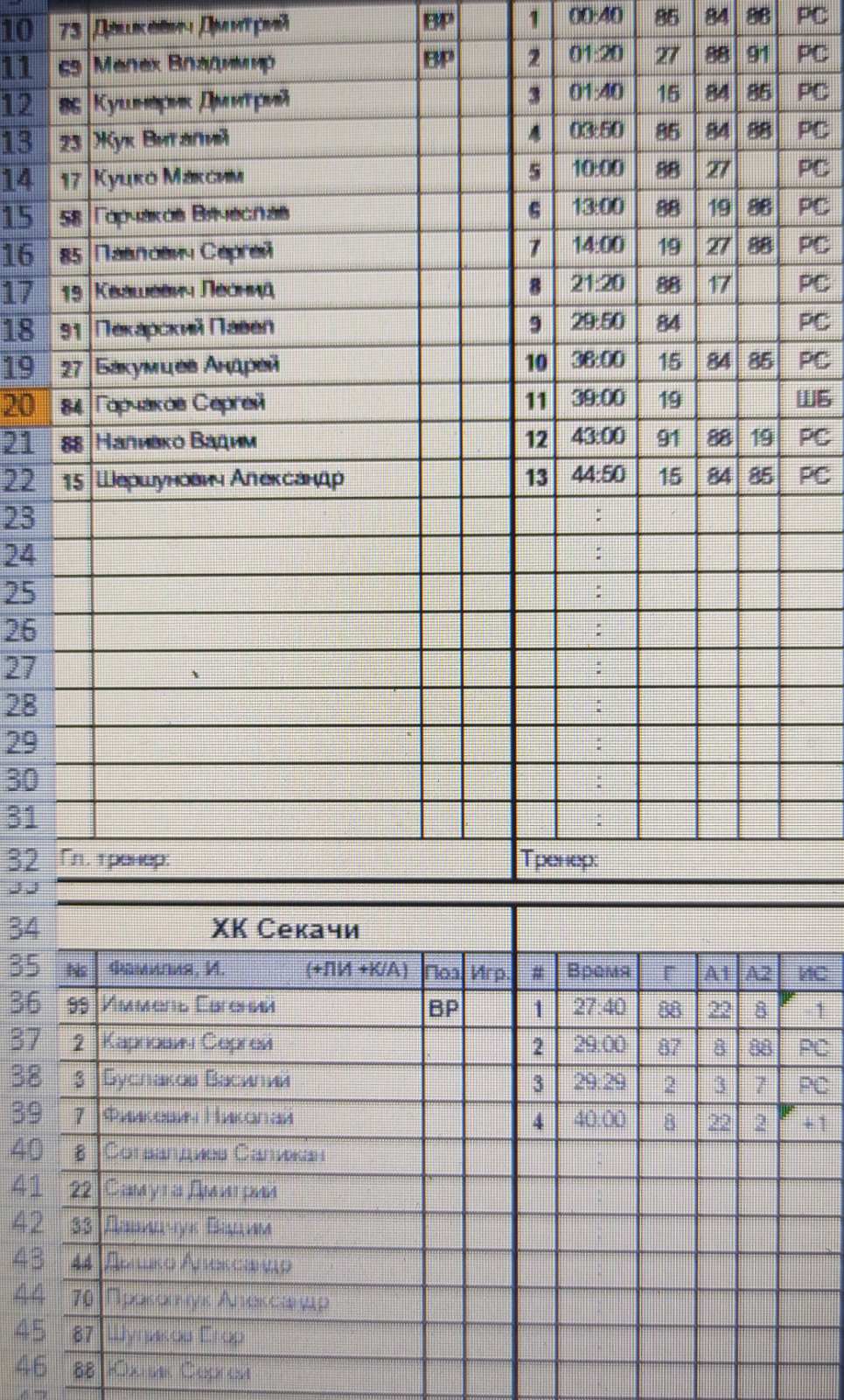 ХК Рыси VS ХК Секачи КалендарьТаблица 27-02-2026 20:00 14-й тур Ивацевичи ХК Рыси ХК Секачи 134 Обзор Обзор Cтатистика Составы Фото Статистика игроков Павлович Сергей(Пас: Горчаков Сергей, Кушнерик Дмитрий) Гол 00:40 Бакумцев Андрей(Пас: Наливко Вадим, Пекарский Павел) Гол 01:20 Шершунович Александр(Пас: Горчаков Сергей, Павлович Сергей) Гол 01:40 Павлович Сергей(Пас: Горчаков Сергей, Наливко Вадим) Гол 03:50 Наливко Вадим(Пас: Бакумцев Андрей) Гол 10:00 Наливко Вадим(Пас: Квашевич Леонид, Кушнерик Дмитрий) Гол 13:00 Квашевич Леонид(Пас: Бакумцев Андрей, Наливко Вадим) Гол 14:00 Наливко Вадим(Пас: Куцко Максим) Гол 21:20 27:40 Гол Юхник Сергей(Пас: Самута Дмитрий, Сотвалдиев Салижан) 29:00 Гол Шупиков Егор(Пас: Сотвалдиев Салижан, Юхник Сергей) 29:29 Гол Карпович Сергей(Пас: Буслаков Василий, Финкевич Николай) Горчаков Сергей Гол 29:50 Шершунович Александр(Пас: Горчаков Сергей, Павлович Сергей) Гол 36:00 Квашевич Леонид Гол 39:00 40:00 Гол Сотвалдиев Салижан(Пас: Карпович Сергей, Самута Дмитрий) Пекарский Павел(Пас: Наливко Вадим, Квашевич Леонид) Гол 43:00 Шершунович Александр(Пас: Павлович Сергей, Горчаков Сергей) Гол 44:50 Дашевич Дмитрий ПШ ПШ Иммель Евгений ХК Рыси вратарьВремя игры, часКоэффициент надежностиПропущено шайбШтрафы Дашевич Дмитрий0.755.334Итого0.755.334 ХК Секачи вратарьВремя игры, часКоэффициент надежностиПропущено шайбШтрафы Иммель Евгений0.7517.3313Итого0.7517.3313 ХК Рыси ХК Секачи Стартовые составы Бакумцев Андрей Горчаков Вячеслав Горчаков Сергей Дашевич Дмитрий Жук Виталий Квашевич Леонид Куцко Максим Кушнерик Дмитрий Мелех Владимир Наливко Вадим Павлович Сергей Пекарский Павел Шершунович Александр Буслаков Василий Давидчук Вадим Дышко Александр Иммель Евгений Карпович Сергей Прокопчук Александр Самута Дмитрий Сотвалдиев Салижан Финкевич Николай Шупиков Егор Юхник Сергей